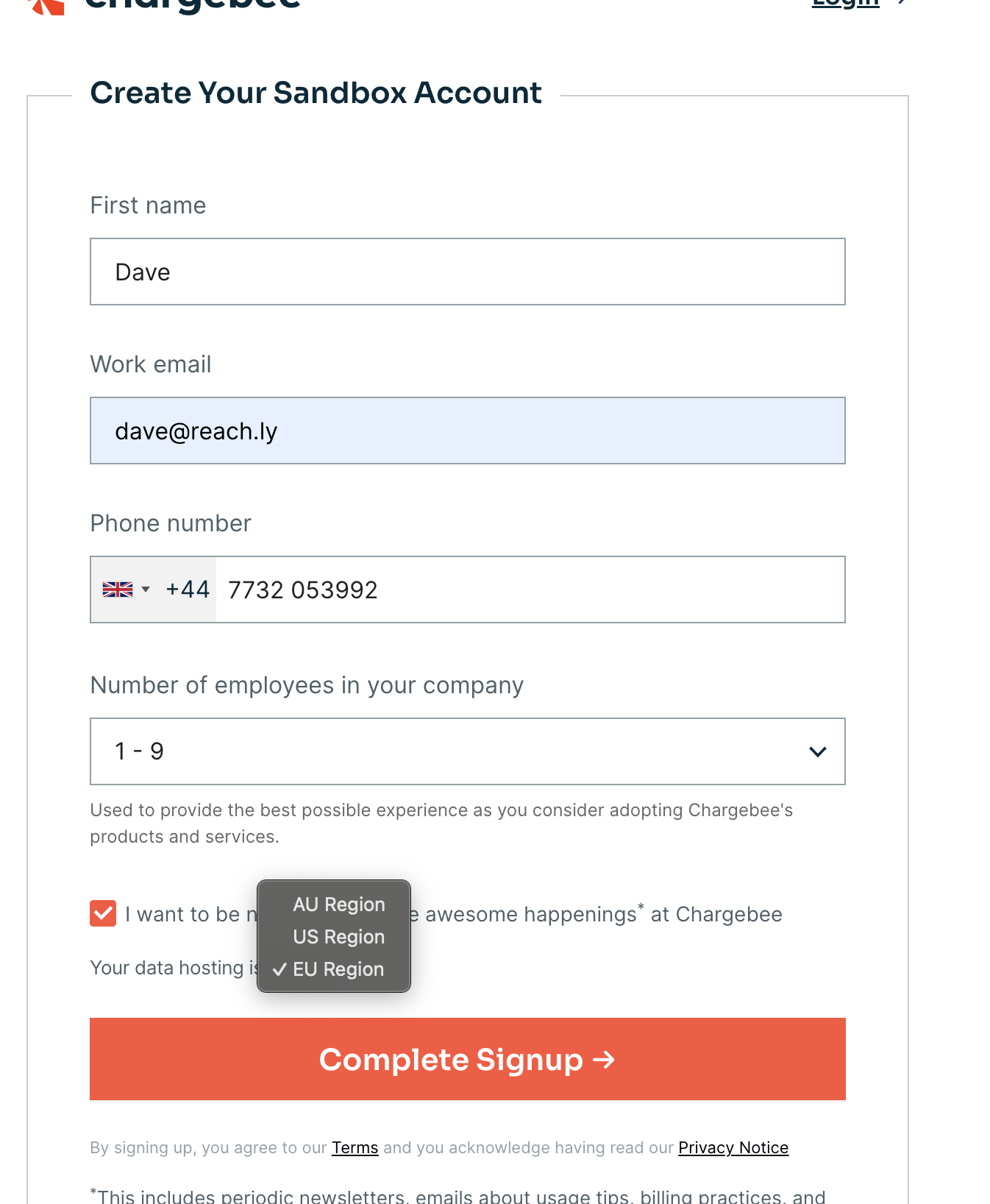 Future step after v2 launch, users able to select where their data is hosted (See chargebee example)